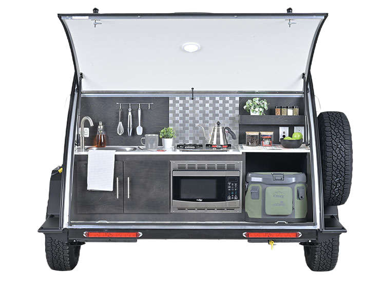 The T@G trailer comes in two sizes: standard and XL. The XL has the same features as the standard model, but is 12 inches wider. Because of the XL's wider galley, it includes options not available in the standard version, like a microwave.